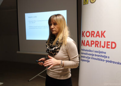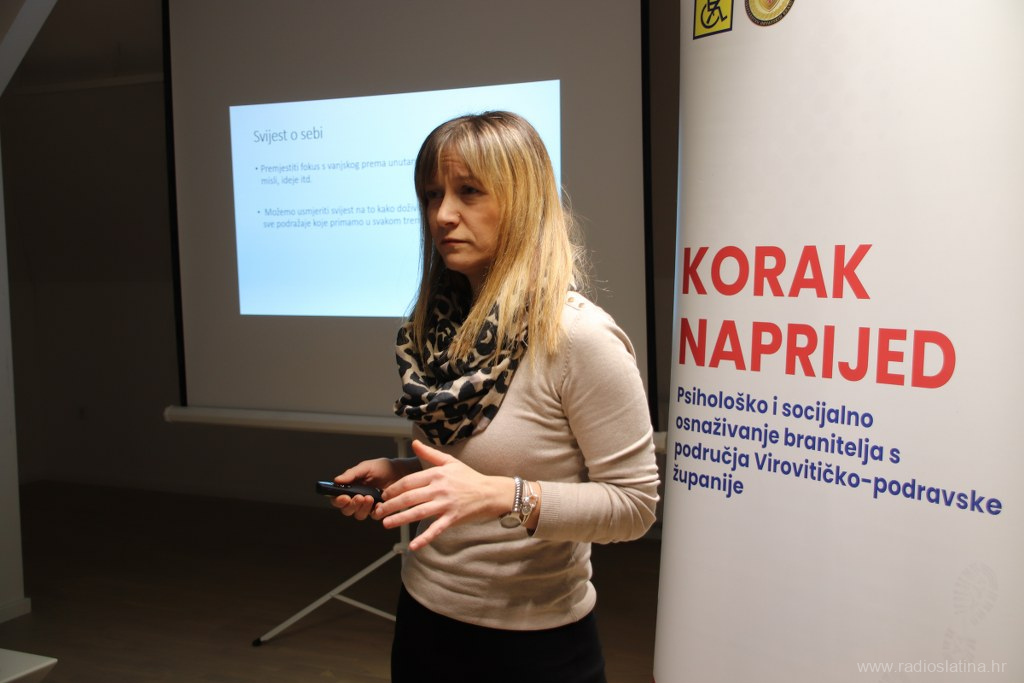 Radionica čiji je cilj, između ostaloga, bio podizanje kvalitete življenja braniteljske populacije s ciljem ublaživanja posljedica rata, očuvanja mentalnog zdravlja te njihovo socijalno uključivanje u društvo u cjelini, održana je u Poduzetničkom inkubatoru u Slatini pod vodstvom prof. psihologije Sanje Milković Šipek.